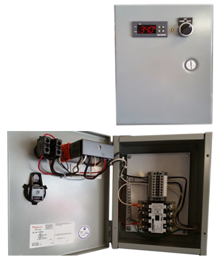 Heat Trace Panel, able to switch up to (4) 30 amp heat trace circuits independently controlled. An economic option for the process world, where the controlling multiple runs of heat trace is required.