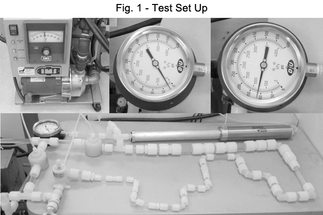 The test applies to ?-inch, 3/8-inch, ?-inch, ?-inch and one-inch fitting assemblies. A master assembly that includes all five fitting sizes along with PFA tubing is to be pressurized with deionized water from 20 psi to 120 psi and water temperature to be cycled from 18°C to 95°C.